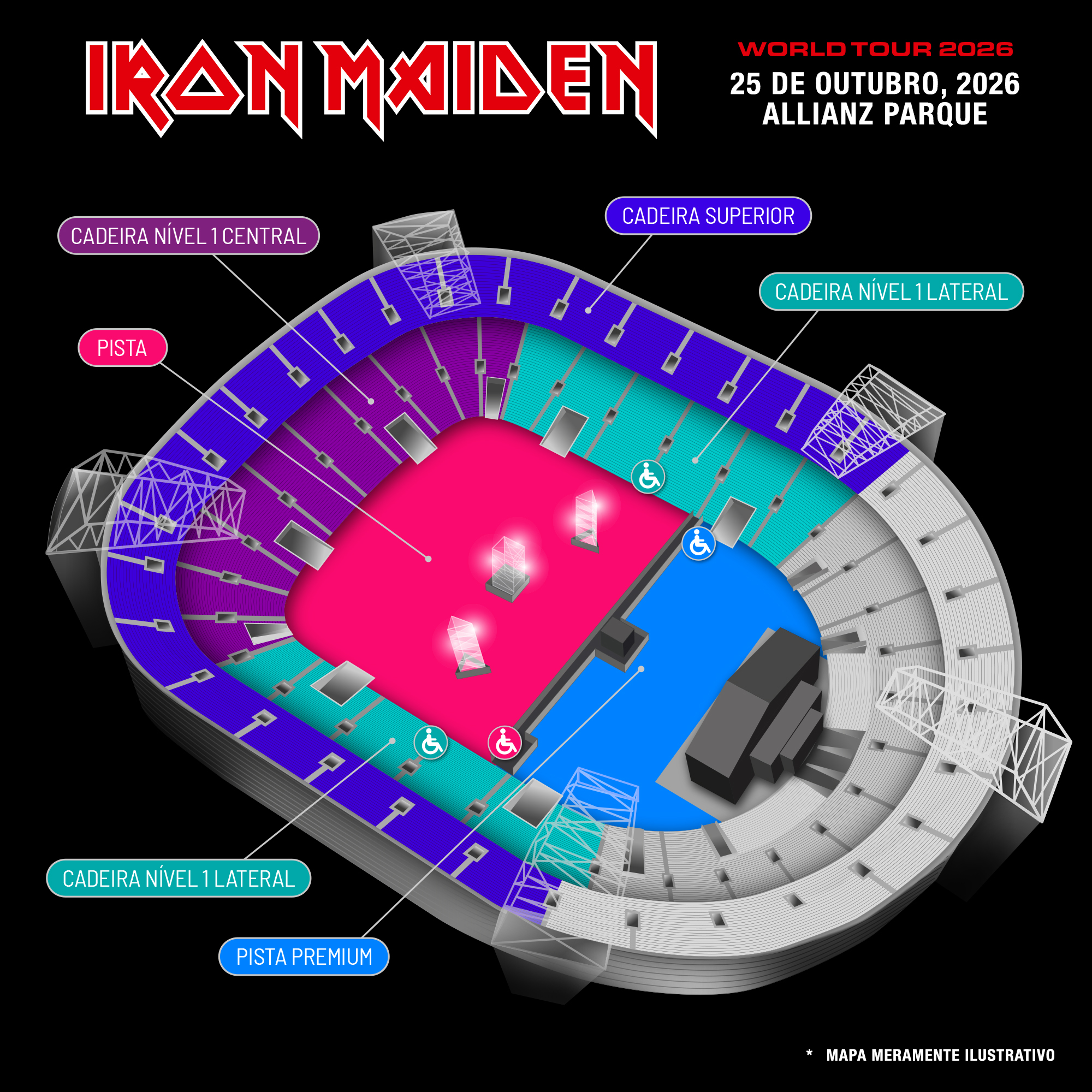 O IRON MAIDEN anunciou hoje as datas da etapa da América Central e do Sul da aclamada “RUN FOR YOUR LIVES WORLD TOUR”. Em comemoração aos 50 anos da banda, os shows acontecerão em estádios por toda a região, permitindo que os fãs vejam a nova e avançada produção no formato para o qual foi concebida: palcos gigantes em arenas ao ar livre, acompanhando um setlist único, com músicas dos nove primeiros álbuns que marcaram a trajetória do grupo.